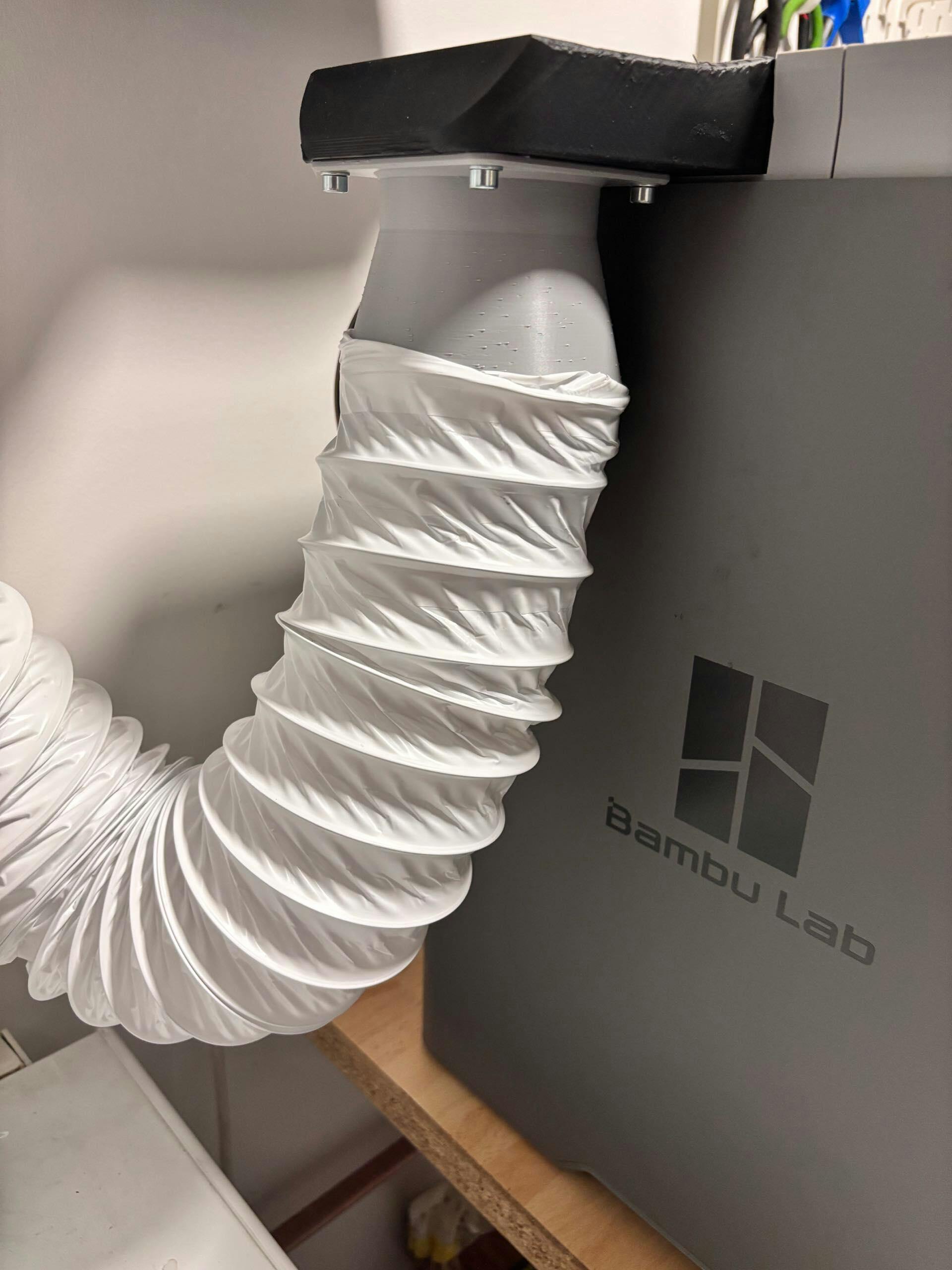 By guiding the airflow directly toward a specific outlet, it prevents fumes from leaking into your room and ensures safer home printing — especially when working with materials like ABS or ASA.